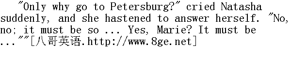 不过他为什么要去彼得堡!"娜塔莎说, 她连忙自己作出了回答: "不, 不, 应该去......玛丽, 你说是吗?应该去......"