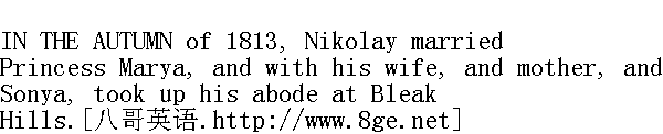 一八一四年秋天, 尼古拉和玛丽亚公爵小姐结了婚, 尼古拉带着妻子、母亲和索尼娅迁到童山居住。 Within four years he had paid off the remainder of his debts without selling his wife's estates, and coming into a small legacy on the death of a cousin, he repaid the loan he had borrowed from Pierre also. 三年内, 他没有变卖妻子的田产就还清了其余的债务。一个表姐去世后, 他继承了一笔不大的遗产, 把欠皮埃尔的债也还清了。 In another three years, by 1820, Nikolay had so well managed his pecuniary affairs that he was able to buy a small estate adjoining Bleak Hills, and was opening negotiations for the repurchase of his ancestral estate of Otradnoe, which was his cherished dream. 又过了三年, 到一八二○年, 尼古拉已把他的财务整顿得有条不紊, 更进一步在童山附近买了一处不大的庄园;此时他还在谈判买回父亲在奥特拉德诺耶的住宅--这可是他梦寐以求的一桩大事啊! Though he took up the management of the land at first from necessity, he soon acquired such a passion for agriculture, that it became his favourite and almost his exclusive interest. Nikolay was a plain farmer, who did not like innovations, especially English ones, just then coming into vogue, laughed at all theoretical treatises on agriculture, did not care for factories, for raising expensive produce, or for expensive imported seed. He did not, in fact, make a hobby of any one part of the work, but kept the welfare of the estate as a whole always before his eyes. The object most prominent to his mind in the estate was not the azote nor the oxygen in the soil or the atmosphere, not a particular plough nor manure, but the principal agent by means of which the azote and the oxygen and the plough and the manure were all made effectual-that is, the labourer, the peasant. When Nikolay took up the management of the land, and began to go into its different branches, the peasant attracted his chief attention. He looked on the peasant, not merely as a tool, but also as an end in himself, and as his critic. At first he studied the peasant attentively, trying to understand what he wanted, what he thought good and bad; and he only made a pretence of making arrangements and giving orders, while he was in reality learning from the peasants their methods and their language and their views of what was good and bad. And it was only when he understood the tastes and impulses of the peasant, when he had learned to speak his speech and to grasp the hidden meaning behind his words, when he felt himself in alliance with him, that he began boldly to direct him-to perform, that is, towards him the office expected of him. And Nikolay's management produced the most brilliant results. 起初, 他管理家业是出于需要, 但不久就对经营庄园入了迷, 几乎成为他独一无二的爱好了。尼古拉是个普通地主, 不喜欢新办法, 特别不喜欢当时流行的那套英国办法, 他嘲笑经济理论著作, 不喜欢办工厂, 不喜欢价格高昂的产品, 不喜欢种植其他贵重的农作物, 也不单独经营农业的某一部门。他的目光总是盯着整个庄园, 而不是庄园的某一部门, 在庄园里, 主要的东西不是存在于土壤和空气中的氮和氧, 不是特别的犁和粪肥, 而是使氮、氧、粪肥和犁发生作用的主要手段, 也就是农业劳动者。当尼古拉着手管理庄园, 深入了解它的各个方面的时候, 尤其注重农民。他认为农民不仅是农业生产中的主要手段, 而且是农业生产的最终目标和判断农业生产最后效益的主要裁判员。他先是观察农民, 竭力了解他们的需要, 了解他们对好坏的看法, 他只是在表面上发号施令, 而实际上是向农民学习他们的工作方法、语言, 以及对好坏是非的判断。只有当他了解农民的爱好和愿望, 学会用他们的语言说话, 懂得他们话里潜在的意思, 感到自己同他们已打成一片;只有在这个时候他才大胆地管理他们, 也就是对农民尽他应尽的责任。尼古拉就是这样来经营他的农庄, 于是在农业上他取得了最辉煌的成就。 On taking over the control of the property, Nikolay had at once by some unerring gift of insight appointed as bailiff, as village elder, and as delegate the very men whom the peasants would have elected themselves had the choice been in their hands, and the authority once given them was never withdrawn. Before investigating the chemical constituents of manure, or going into ''debit and credit'' (as he liked sarcastically to call book-keeping), he found out the number of cattle the peasants possessed, and did his utmost to increase the number. He kept the peasants' families together on a large scale, and would not allow them to split up into separate households. The indolent, the dissolute, and the feeble he was equally hard upon and tried to expel them from the community. At the sowing and the carrying of the hay and corn, he watched over his own and the peasants' fields with absolutely equal care. And few landowners had fields so early and so well sown and cut, and few had such crops as Nikolay. 尼古拉着手管理庄园的时候, 凭着他那天赋的洞察力, 立刻指定了合适的村长和工长(如果农民有权选举的话, 也会选上这两个人的), 而且再也不更换。他首先做的不是研究粪肥的化学成分, 不是钻研借方和贷方(他爱说这种嘲笑的话), 而是弄清农民牲口的头数, 并千方百计使牲口增加。他支持农民维持大家庭, 不赞成分家。他对懒汉、二流子和软弱无能的人一概不姑息, 尽可能把他们从集体驱逐出去。在播种、收割干草和作物上, 他对自己的田地和对农民的田地一视同仁。像尼古拉这样播种和收割得又早又好、收入又这么好的地主很少。