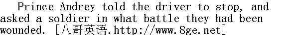 安德烈公爵吩咐手下人停步, 向一名士兵询问, 他们是在什么战役中负伤的。 "The day before yesterday on the Danube," answered the soldier. Prince Andrey took out his purse and gave the soldier three gold pieces. " 前天在多瑙河上负伤的。"士兵回答。安德烈公爵掏出钱包把三枚金币交给士兵。 "For all," he added, addressing the officer as he came up. "Get well, lads," he said to the soldiers, "there's a lot to do yet." " 是给你们大家的, "他向那个朝他跟前走来的军官补充说。"伙伴们, 养好伤吧, "他把脸转向士兵们说道, "还有许多仗要打啊。" "What news?" asked the officer, evidently anxious to get into conversation. " 副官先生, 怎么样?有什么消息?"军官问道, 看起来, 他想畅谈一番。 "Good news! Forward!" he called to the driver, and galloped on. " 有好消息啊!前进。"他向驿站马车夫喊了一声, 便乘车往前奔驰而去。
