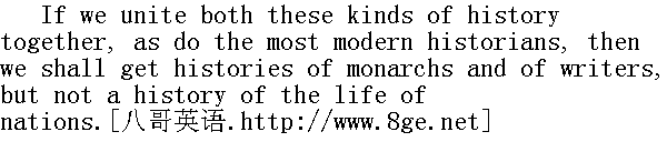 假如把这两种历史结合起来, 就像当代史学家们所做的那样, 那么, 我们所得到的将是帝王们和著作家们的历史, 而不是各民族生活的历史。