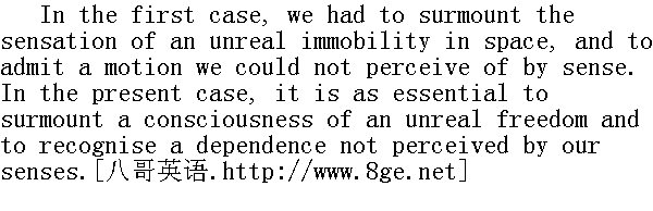 在第一种情形下, 要否定地球在空间静止的意识, 并且承认我们感觉不到它的运动;在现在的情形下, 同样要否定被意识到的自由意志, 并且承认我们感觉不出的依赖性。 | |