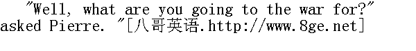 啊,您为什么要去作战呢?"皮埃尔问道。 "What for? I don't know. Because I have to. Besides, I'm going..." he stopped. "I'm going because the life I lead here, this life is-not to my taste!" " 为什么?我也不知道,应当这样做。除此而外,我去作战......"他停顿下来了,"我去作战是因为我在这里所过的这种生活,这种生活不合乎我的心愿!"