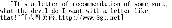 怎么?" "Ah, what a pig I've been, never once to have written and to have given them such a fright. Ah, what a pig I am!" he repeated, flushing all at once. "Well, did you send Gavrila for some wine? That's right, let's have some!" said he." 哎呀, 我真是猪猡。我一封信都没有写过, 真把他们吓坏了。咳, 我真是猪猡!"他忽然涨红了脸, 重复地说。"喂, 你派加夫里洛去打酒吧!也好, 我们喝他个痛快!......"他说。 With the letters from his family there had been inserted a letter of recommendation to Prince Bagration, by Anna Mihalovna's advice, which Countess Rostov had obtained through acquaintances, and had sent to her son, begging him to take it to its address, and to make use of it. 在双亲的信函中, 附有一封呈送巴格拉季翁公爵的介绍信, 老伯爵夫人依照安娜·米哈伊洛夫娜的忠告借助于熟人弄到这封介绍信, 并且寄给她儿子, 要他把信件送至指定的收件人, 充分加以利用。 "What nonsense! Much use to me," said Rostov, throwing the letter under the table." 真是愚蠢!我才不需要哩。"罗斯托夫把信扔到桌子底下时, 说道。 "What did you throw that away for?" asked Boris." 你为什么把它扔掉呀?"鲍里斯问道。