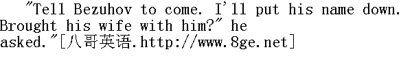 那么, 吩咐人去买大鲟鱼罗?"管事人问道。 "Yes; it can't be helped, we must take them, if they won't knock the price down. Ah, mercy on us, I was forgetting. Of course we must have another entree on the table. Ah, good heavens!" he clutched at his head. "And who's going to get me the flowers? Mitenka! Hey, Mitenka! You gallop, Mitenka," he said to the steward who came in at his call, "you gallop off to the Podmoskovny estate" (the count's property in the environs of Moscow), "and tell Maksimka the gardener to set the serfs to work to get decorations from the greenhouses. Tell him everything from his conservatories is to be brought here, and is to be packed in felt. And that I'm to have two hundred pots here by Friday."" 既然不让价, 有什么办法, 去买吧。是啊, 我的老天爷啊!我本来快要忘记了。瞧, 还有一盘冷菜要端上餐桌。哎呀, 我的老天爷啊!"他抓住自己的脑袋, 心惊胆战起来, "谁给我把花卉运来?米坚卡!啊, 米坚卡!米坚卡, 你快马加鞭到莫斯科郊外田庄去一趟, "他把脸转向应声走进来的管理员说, "你快马加鞭到莫斯科郊外田庄去, 吩咐园丁马克西姆卡, 叫他马上派人服劳役。对他说, 用毡子把暖房的花统统包好, 运到这里来。叫人在礼拜五以前将两百盆花给我送来。" After giving further and yet further directions of all sorts, he was just going off to the countess to rest from his labours, but he recollected something else, turned back himself, brought the cook and manager back, and began giving orders again. They heard in the doorway a light, manly tread and a jingling of spurs, and the young count came in, handsome and rosy, with his darkening moustache, visibly sleeker and in better trim for his easy life in Moscow. 他又发出了一连串的指示, 正走出门, 要去伯爵小姐那里休息休息, 可是又想起一件紧要的事情, 他走回去, 把管事人和厨师召回, 又作出了一些指示。从门口可以听见男人的轻盈的步履声, 年轻的伯爵走进来了, 他长得漂亮, 脸色红润, 蓄起一撮黑色的胡髭。显然, 莫斯科的安逸的生活使他得到充分的休息和精心的照料。 "Ah, my boy! my head's in a whirl," said the old gentleman, with a somewhat shamefaced smile at his son. "You might come to my aid! We have still the singers to get, you see. The music is all settled, but shouldn't we order some gypsy singers? You military gentlemen are fond of that sort of thing."" 啊, 我的伙计啊!我简直晕头转向了, "老头子说, 他面露微笑, 好像在儿子面前有点害臊似的。"你来帮个忙也好!要知道, 还得用上大批歌手啊。我有一个乐队, 把那些茨冈人叫来, 还是怎么样?你们军人兄弟喜欢这事儿。" "Upon my word, papa, I do believe that Prince Bagration made less fuss over getting ready for the battle of Sch?ngraben than you are making now," said his son, smiling." 爸爸, 说实话, 我想, 巴格拉季翁公爵在准备申格拉本战役时还没有你们目前这样忙碌哩。"儿子面露笑意, 说。