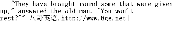 牵来了驿马, "仆人回答, "您不再休息吗?" "No, tell them to harness them."" 不, 去吩咐驾马。" "Can he really be going away and leaving me all alone, without telling me everything and promising me help?" thought Pierre, getting up with downcast head, beginning to walk up and down the room, casting a glance from time to time at the freemason. "Yes, I had not thought of it, but I have led a contemptible, dissolute life, but I did not like it, and I didn't want to," thought Pierre, "and this man knows the truth, and if he liked he could reveal it to me." Pierre wanted to say this to the freemason and dared not. After packing his things with his practised old hands, the traveller buttoned up his sheepskin. On finishing these preparations, he turned to Bezuhov, and in a polite, indifferent tone, said to him:" 他难道真要离开了, 不把话说完, 也没有答应帮助我, 就把我一人留在这儿吗?"皮埃尔一面想道, 一面站起来, 低下头, 有时候看看共济会员, 开始在房里踱来踱去。"是的, 我未曾想到这一点, 但是我过着令人蔑视的淫荡的生活, 不过我不喜欢这种生活, 也不希望有这种生活。"皮埃尔想道, "这个人知道真理, 只要他乐意, 他是会向我揭示真理的。"皮埃尔想说这句话, 但是不敢把它说给共济会员听。过路客人用那老年人习惯做事的手收拾好东西, 扣上皮袄。他做完这几件事以后就向别祖霍夫转过脸去, 用那冷淡的恭敬的口吻对他说: "Where are you going now, sir?"" 阁下, 请问您现在到哪里去?" "I? ... I'm going to Petersburg," answered Pierre in a tone of childish indecision. "I thank you. I agree with you in everything. But do not suppose that I have been so bad. With all my soul I have desired to be what you would wish me to be; but I have never met with help from any one.... Though I was myself most to blame for everything. Help me, instruct me, and perhaps I shall be able ..."" 我?......我到彼得堡去, "皮埃尔用童稚的不坚定的嗓音回答。"我对您表示感谢。我在各方面同意您的看法。但是您不要以为我很坏。我诚心地希望做一个您希望我做的那样的人, 但是我从来没有获得任何人的帮助......其实, 首先要说的是, 我本人在各方面都有过错。您帮助我吧, 您教教我吧, 说不定, 我将是......"
