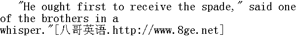 他先得领到一把铲子。"有个师兄轻言细语地说。 "Oh! hush, please," said another." 啊!够了, 别再说了。"另一个说。 Pierre did not obey, but with uneasy short-sighted eyes looked about him, and suddenly doubt came over him. "Where am I? What am I doing? Aren't they laughing at me? Shan't I be ashamed to remember this?" But this doubt only lasted a moment. Pierre looked round at the serious faces of the people round him, thought of all he had just been through, and felt that there was no stopping half-way. He was terrified at his own hesitation, and trying to arouse in himself his former devotional feeling, he cast himself down at the gates of the temple. And the devotional feeling did in fact come more strongly than ever upon him. When he had lain there some time, he was told to get up, and a white leather apron such as the others wore was put round him, and a spade and three pairs of gloves were put in his hands; then the grand master addressed him. He told him that he must try never to stain the whiteness of that apron, which symbolised strength and purity. Then of the unexplained spade he told him to toil with it at clearing his heart from vice, and with forbearing patience smoothing the way in the heart of his neighbour. Then of the first pair of gloves he said that he could not know yet their significance, but must treasure them; of the second pair he said that he must put them on at meetings; and finally of the third pair-they were women's gloves-he said: 皮埃尔没有听从, 他用心慌意乱的近视眼睛环顾四周, 心里忽然感到怀疑: "我在哪儿?我在做什么?他们是不是嘲笑我呢?我想起这一点会不觉得可耻吗?"可是这种疑惑只持续了片刻。皮埃尔环顾了他周围的人们的严肃的面孔, 回想起他经历的一切, 他心里明白, 不能半途而废。他想到自己多疑, 大吃一惊, 极欲使他自己产生从前的怜悯心, 于是乎拜倒在神殿门前。他脑海中确乎产生了那种较诸从前更为强烈的怜悯心。他仰卧不多时, 就有人吩咐他站起身来, 给他围上一条别人那样的白皮围裙, 将一把铲子和三双手套送到他手上, 这时候共济会分会会长才对他讲话。他对他说, 要他尽力设法不让任何东西沾污这条表示坚贞和纯洁的围裙的白色, 然后对他讲到这把用途不明的铲子, 叫他付出劳动, 用它来净化自己的内心, 剔除种种恶习, 用以宽厚地抚慰他人的内心。然后他讲到第一双男式手套, 说他不知道它的意义何在, 但是皮埃尔应当保存它, 至于另一双男式手套, 他说他应当戴上这双手套参加会议, 末了他就第三双女式手套说明如下: "Dear brother, and these woman's gloves are destined for you too. Give them to the woman whom you shall honour beyond all others. That gift will be a pledge of your purity of heart to her whom you select as a worthy helpmeet in masonry." After a brief pause, he added: "But beware, dear brother, that these gloves never deck hands that are impure."While the grand master uttered the last words it seemed to Pierre that he was embarrassed. Pierre was even more embarrassed; he blushed to the point of tears, as children blush, looking about him uneasily, and an awkward silence followed." 亲爱的师弟, 这双女式手套是送给您的。请您转送给您最尊重的女人。您将来给您自己选择一位贤淑的共济会员太太, 您通过这件礼物使她相信您的内心的纯洁。"他沉默片刻, 补充说, "但是亲爱的师弟, 要遵守一条规定, 不能让这双手套去美化不干净的手。"当分会会长说出最后这几句话的时候, 皮埃尔仿佛觉得, 主席困惑不安。皮埃尔更不好意思, 他像孩子似的脸红得连眼泪都夺眶而出, 他开始不安地环顾四周, 出现了令人困窘的沉寂。 This silence was broken by one of the brothers who, leading Pierre to the rug, began reading out of a manuscript book the interpretation of all the figures delineated upon it: the sun, the moon, the hammer, the balance, the spade, the rough stone and the shaped stone, the past, the three windows, etc. Then Pierre was shown his appointed place, he was shown the signs of the lodge, told the password, and at last permitted to sit down. The grand master began reading the exhortation. The exhortation was very long, and Pierre in his joy, his emotion, and his embarrassment was hardly in a condition to understand what was read. He only grasped the last words of the exhortation, which stuck in his memory. 有个师兄打破了这一阵沉默, 他把皮埃尔领到地毯前面, 开始从笔记本中给他念出地毯上绘制的图形(日、月、槌子、铅锤、铲子、立方形奇石、柱子、三扇窗子等)的说明文字。之后他们给他指定一个座位, 把分会证章拿给他看, 告诉他入门的暗语, 最后允许他坐下。分会会长开始宣读分会章程。章程很长, 皮埃尔由于欢喜、激动和羞愧, 不能听懂所念的内容, 他只谛听了章程的最后几句, 并且铭记于心。