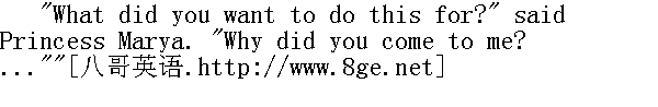 您何苦呢?"公爵小姐玛丽亚说, "您为什么到我这里来? ... "No, I was joking really, Pelageyushka," said Pierre. "Princess, ma parole, je n'ai pas voulu l'offenser. I said it, meaning nothing. Don't think of it, I was joking," he said, smiling timidly and trying to smooth over his crime. "It was all my fault; but he didn't mean it, he was joking."" 不, 佩拉格尤什卡, 要知道, 我是开玩笑的, "皮埃尔说。"Princesse, ma parole, je n'ai pas voulu l'ofAfenver, ①我只有这个想法罢了。你甭多想, 我不过是开了个玩笑。"他说, 畏葸葸地微笑着, 想改正过错。 ①法语: 公爵小姐, 说实话, 我不想使她感到委屈。 Pelageyushka remained distrustful; but Pierre's face wore a look of such genuine penitence, and Prince Andrey looked so mildly from Pelageyushka to Pierre, that she was gradually reassured. 佩拉格尤什卡停住了, 流露出怀疑的样子, 可是从皮埃尔脸上可以看出真诚悔改的表情, 安德烈公爵时而温顺地看看佩拉格尤什卡, 时而看看皮埃尔, 他因此渐渐安静下来。