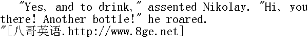对, 就来喝吧, "尼古拉附和地说, "喂, 你呀!再喝一瓶!"他喊了一声。