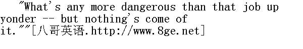 我们在上面干的事够危险, 可并没有出差错。" "That's different. Away up the river so, and not another house about. 'Twon't ever be known that we tried, anyway, long as we didn't succeed." " 那可不一样,那是在河上面,离得又很远,附近没有人家,我们试了没干成,这不会有人知道。" "Well, what's more dangerous than coming here in the daytime! -- anybody would suspicion us that saw us." " 再说,哪里还有比大白天来这儿更危险的事呢?--谁看见都会起疑心。" "I know that. But there warn't any other place as handy after that fool of a job. I want to quit this shanty. I wanted to yesterday, only it warn't any use trying to stir out of here, with those infernal boys playing over there on the hill right in full view." " 这我知道。可是干了那傻事后,没有比这更方便的地方了。我也要离开这烂房子。昨天就想走,可是那两个可恶的小子在山上玩,他们看这里一清二楚,想溜是不可能的。" "Those infernal boys" quaked again under the inspiration of this remark, and thought how lucky it was that they had remembered it was Friday and concluded to wait a day. They wished in their hearts they had waited a year. " 那两个可恶的小子"一听就明白了,因此抖个不停;想到他们等到周六再行动,觉得真是幸运,心里想,就是已等了一年,也心甘情愿。