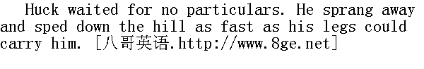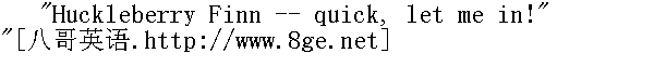 现在下手?还有外人在也不怕?听着,你有点可疑,现在不行。得等里边的灯灭了才能动手--用不着这样急。" Huck felt that a silence was going to ensue -- a thing still more awful than any amount of murderous talk; so he held his breath and stepped gingerly back; planted his foot carefully and firmly, after balancing, one-legged, in a precarious way and almost toppling over, first on one side and then on the other. He took another step back, with the same elaboration and the same risks; then another and another, and -- a twig snapped under his foot! His breath stopped and he listened. There was no sound -- the stillness was perfect. His gratitude was measureless. Now he turned in his tracks, between the walls of sumach bushes -- turned himself as carefully as if he were a ship -- and then stepped quickly but cautiously along. When he emerged at the quarry he felt secure, and so he picked up his nimble heels and flew. Down, down he sped, till he reached the Welshman's. He banged at the door, and presently the heads of the old man and his two stalwart sons were thrust from windows. 哈克觉得随后会有一阵沉默,这种沉默要比任何口头上说说杀人还要可怕。因此他屏住呼吸,小心翼翼往后退。他每退一步,靠单腿用力,身子先往一边倾,然后又倾向另一边,有时差点栽倒,然后小心地站稳脚跟,接着以同样的方式,冒同样的危险再挪另一只脚,就这样左右轮换着往后退--突然一根小树枝啪地一声被踩断!他憋住气,听了听。没有异样的响声--只有绝对的安静。他感到谢天谢地,现在他退回到两堵墙似的绿树之间的小道上,转身时非常小心,好像是一艘船在调头--然后步伐敏捷而又谨慎地往回走去。到了石坑那边,他觉得安全了,拔腿就跑,一路飞奔。一直跑到威尔斯曼家门口才停下来。他怦怦地敲门,接着老人和他那两个健壮的儿子从窗户里探出头。 "What's the row there? Who's banging? What do you want?" " 怎么搞的?是谁在敲门?你想干什么?" "Let me in -- quick! I'll tell everything." " 开门让我进去--快点!我会全告诉你们。" "Why, who are you?" " 嗯?你是谁?"