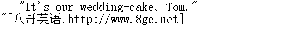 是我俩的结婚喜糕啊,汤姆。" "Yes -- I wish it was as big as a barrel, for it's all we've got." " 对了,现在就剩下这点东西了,它要是有方桶那么大就好了。" "I saved it from the picnic for us to dream on, Tom, the way grown-up people do with wedding-cake -- but it'll be our --" " 这还是我野餐时留下的,做个想头,汤姆,大人们的结婚喜糕不也是这样的吗?--不过这将是我俩的--" She dropped the sentence where it was. Tom divided the cake and Becky ate with good appetite, while Tom nibbled at his moiety. There was abundance of cold water to finish the feast with. By-and-by Becky suggested that they move on again. Tom was silent a moment. Then he said: 她话只说了半截,汤姆就动手分喜糕。贝基大口大口地吃着,汤姆自己却一点一点、地尝着他那份。最后,他俩又饱饱地喝了一通凉水,结束了这顿"宴席"。这时贝基又开始建议继续往前走。汤姆先沉默了一会,然后说: "Becky, can you bear it if I tell you something?" " 贝基,如果我告诉你,你受得了吗?"