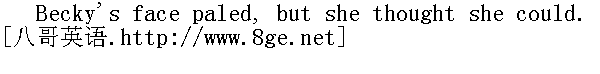 贝基的脸色发白,可她觉得她能受得了。 "Well, then, Becky, we must stay here, where there's water to drink. That little piece is our last candle!" " 是这样的,贝基,我们得呆在这里,这里有水喝,我们的蜡烛也只有这么一小截了!" Becky gave loose to tears and wailings. Tom did what he could to comfort her, but with little effect. At length Becky said: 贝基放声大哭,汤姆尽全力来安慰她,可是一点用也没有。最后贝基说: "Tom!" " 汤姆!" "Well, Becky?" " 我在这里,贝基,有什么要说的吗?"