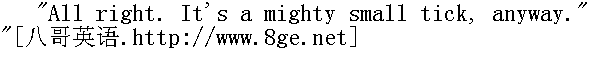 只是个扁虱罢了。" "Where'd you get him?" " 在哪搞到的?" "Out in the woods." " 在外面的树林里。" "What'll you take for him?" " 拿什么东西跟你换它,你才干?" "I don't know. I don't want to sell him." " 我不知道。我不想把它卖掉。"