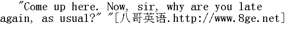 汤姆把扁虱装进前几天囚禁大钳甲虫的那个雷管筒子里后,他们就分手了,各自都感觉比以前富有了许多。 When Tom reached the little isolated frame schoolhouse, he strode in briskly, with the manner of one who had come with all honest speed. He hung his hat on a peg and flung himself into his seat with business-like alacrity. The master, throned on high in his great splint-bottom arm-chair, was dozing, lulled by the drowsy hum of study. The interruption roused him. 汤姆来到那座孤零零的小木框校舍的时候,他迈着轻松愉快的步伐,好像是老老实实来上学的样子,大步走进教室。他把帽子挂在钉子上,一本正经地边忙边坐到他的座位上。他的老师正高高地坐在他那把大细藤条扶手椅上,听着催眠的读书声,正打着盹。汤姆进来把他吵醒了。 "Thomas Sawyer!" " 托马斯·索亚!" Tom knew that when his name was pronounced in full, it meant trouble. 汤姆晓得老师要是叫他全名,那麻烦事就来了。 "Sir!" " 到,老师!"