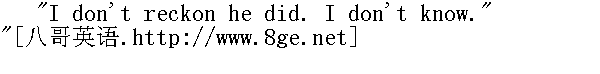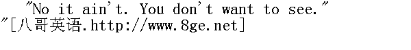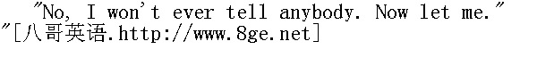 真的没什么好看的。再说,你也不爱看这个。" "Yes I do, indeed I do. Please let me." " 我要看,我真的要看。请让我看一看。" "You'll tell." " 你会说出去的。" "No I won't -- deed and deed and double deed won't." " 不会,决不会,百分之一百二十地不会。" "You won't tell anybody at all? Ever, as long as you live?" " 跟任何人你都不会说吗?永远不说,一辈子不说?"