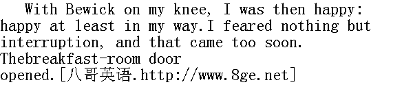 当时,我膝头摊着比尤伊克的书,心里乐滋滋的,至少是自得其乐,就怕别人来打扰。但打扰来得很快,餐室的门开了。
