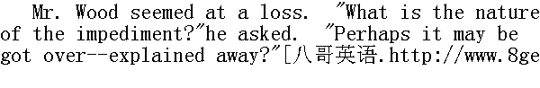 沃德先生似乎不知所措,"是哪一类性质的障碍?"他问。"说不定可以排除--能够解释清楚呢?"