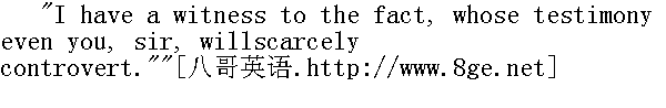 我有一位这件事情的证人,他的证词,先生,连你也难以反驳。"