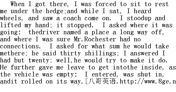 离这儿很远的地名,我确信罗切斯特先生跟那里没有联系。我问出多少钱才肯把我送往