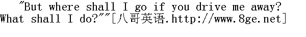 但要是你把我赶走,我能上哪儿呢?我怎么办呢?" "Oh, I'll warrant you know where to go and what to do. Mind youdon't do wrong, that's all. Here is a penny; now go--"" 呵,我保证你知道上哪儿去干什么?当心别干坏事就行啦。这儿是一个便士,现在你走吧!" "A penny cannot feed me, and I have no strength to go farther.Don't shut the door:- oh, don't, for God's sake!"" 一便士不能填饱我肚皮,而我没有力气往前赶路了。别关门!-一呵,别,看在上帝份上:" "I must; the rain is driving in--"" 我得关掉,否则雨要泼进来了。" "Tell the young ladies. Let me see them- "" 告诉年轻姑娘们吧,让我见见她们。"
