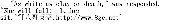 色如死灰,"对方回答,"她会倒下的,让她坐着吧。" And indeed my head swam: I dropped, but a chair received me. Istill possessed my senses, though just now I could not speak. 说真的我的脑袋昏昏沉沉的。我倒了下去,但一把椅子接住了我。尽管这会儿我说不了话,但神志是清醒的。 "Perhaps a little water would restore her. Hannah, fetch some. Butshe is worn to nothing. How very thin, and how very bloodless!"" 也许喝点水会使她恢复过来。汉娜,去打点水来吧。不过她憔悴得不成样子了。那么瘦,一点血色也没有!" "A mere spectre!"" 简直成了个影子。" "Is she ill, or only famished?"" 她病了,还光是饿坏了?"