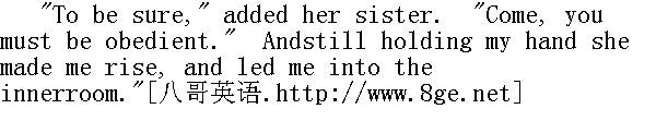 没有错,"她姐姐补充说。"来吧,你得听话。"她一面握着我的手一面拉我起来,领进内室。