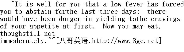 幸好三天来的低烧迫使你禁食,要是一开始便放开肚子吃就危险了。现在你可以吃了,不过还是得节制。"