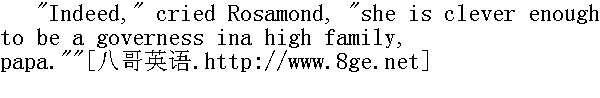真的!"罗莎蒙德嚷道,"她那么聪明,做一个名门家庭的女教师绰绰有余,爸爸。"