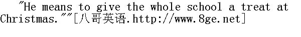 他打算在圣诞节请全校的客人。" "I know."" 我知道了。" "Was it your suggestion?"" 是你的建议吗," "No."" 不是。" "Whose, then?"" 那么是谁的?"