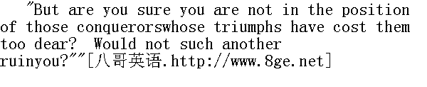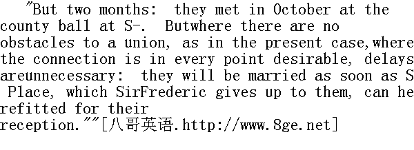 但有两个月了。他们十月份在S城的一个乡间舞会上见的面。可是,眼下这种情况,从各方面看来这门亲事都是称心合意的,没有什么障碍,也就没的必要拖延了。一等弗雷德里克爵士出让给他们的S城那个地方整修好,可以接待他们了,他们就结婚。" The first time I found St. John alone after this communication, Ifelt tempted to inquire if the event distressed him: but he seemedso little to need sympathy, that, so far from venturing to offer himmore, I experienced some shame at the recollection of what I hadalready hazarded. Besides, I was out of practice in talking to him:his reserve was again frozen over, and my frankness was congealedbeneath it. He had not kept his promise of treating me like hissisters; he continually made little chilling differences between us,which did not at all tend to the development of cordiality: inshort, now that I was acknowledged his kinswoman, and lived underthe same roof with him, I felt the distance between us to be fargreater than when he had known me only as the villageschoolmistress. When I remembered how far I had once been admittedto his confidence, I could hardly comprehend his present frigidity. 这次谈话后我第一回见圣.约翰独自呆着的时候,很想问问他,这件事是不是很使他伤心。但他似乎不需要什么同情,因此,我不但没有冒昧地再有所表示,反而想起自己以前的冒失而感到羞愧。此外,我已疏于同他交谈,他的冷漠态度再次结冻,我的坦率便在底下凝固了。他并没有信守诺言,对我以妹妹相待,而是不断地显出那种小小的令人寒心的区别,丝毫没有要慢慢亲热起来的意思。总之,自从我被认作他的亲人,并同住一屋后,我觉得我们间的距离,远比当初我不过是乡村女教师时大得多。当我记起我曾深得他的信任时,我很难理解他现在的冷淡态度。 Such being the case, I felt not a little surprised when he raisedhis head suddenly from the desk over which he was stooping, and said- 在这种情况下,他突然从趴着的书桌上抬起头来说话时,我不免有些惊讶了。 "You see, Jane, the battle is fought and the victory won."" 你瞧,简,仗己经打过了,而且获得了胜利。" Startled at being thus addressed, I did not immediately reply:after a moment's hesitation I answered - 我被这样的说话方式吓了一跳,没有立即回答。但犹豫了一阵子后,说道:
