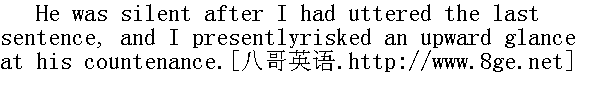 他的目光对着我,既表示子惊讶,又露出了急切的探询之情。"她可在嘲弄?是嘲弄我吗?"这目光仿佛说。"那是什么意思呢?"