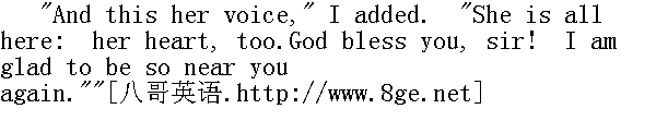 还有她的声音,"我补充说。"她整个儿在这里了,还有她的心。上帝祝福你,先生!我很高兴离你又那么近了。"