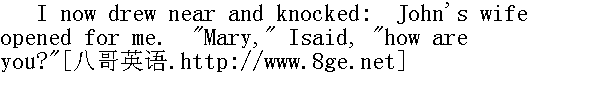 这会儿我走上前去,敲起门来。约翰的妻子开了门。"玛丽,"我说,"你好!" She started as if she had seen a ghost: I calmed her. To herhurried "Is it really you, miss, come at this late hour to thislonely place?" I answered by taking her hand; and then I followedher into the kitchen, where John now sat by a good fire. Iexplained to them, in few words, that I had heard all which hadhappened since I left Thornfield, and that I was come to see Mr.Rochester. I asked John to go down to the turn-pike-house, where Ihad dismissed the chaise, and bring my trunk, which I had leftthere: and then, while I removed my bonnet and shawl, I questionedMary as to whether I could be accommodated at the Manor House forthe night; and finding that arrangements to that effect, thoughdifficult, would not be impossible, I informed her I should stay. 她吓了一大跳,仿佛见了一个鬼似的。我让她镇静了下来。她急忙问道:"当真是你吗,小姐,这么晚了还到这么偏僻的地方来?"我握着她的手回答了她。随后跟着她走进了厨房,这会儿约翰正坐在熊熊的炉火边。我三言二语向他们作了解释,告诉他们,我离开桑菲尔德后所发生的一切我都已经听说了。这回是来看望罗切斯特先生的。还请约翰到我打发了马车的大路上去一趟,把留在那儿的箱子去取回来。随后我一面脱去帽子和披肩,一面问玛丽能不能在庄园里过夜。 "When you go in," said I, "tell your master that a person wishes tospeak to him, but do not give my name."" 你进去的时候,"我说,"告诉你主人,有人想同他谈谈。不过别提我的名字。" "I don't think he will see you," she answered; "he refuseseverybody."" 我想他不会见你,"她回答,"他谁都拒绝。" When she returned, I inquired what he had said. "You are to send inyour name and your business," she replied. She then proceeded tofill a glass with water, and place it on a tray, together withcandles. 她回来时,我问他说了什么。"你得通报姓名,说明来意,"她回答。接着去倒了一杯水,拿了几根蜡烛,都放进托盘。