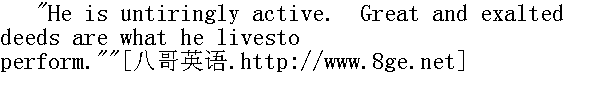 他十分活跃,不知疲倦,他活着就是要成就伟大崇高的事业。"
