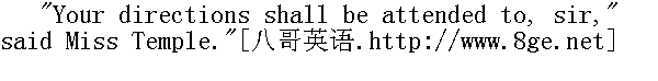 小姐,请允许我说上片刻--你该清楚,我培养这些姑娘,不是打算让她们养成娇奢纵欲的习惯,而是使她们刻苦耐劳,善于忍耐,严于克己,要是偶尔有不合胃口的小事发生,譬如一顿饭烧坏了,一个菜作料加少了或者加多了,不应当用更可口的东西代替失去的享乐,来加以补救。那样只会娇纵肉体,偏离这所学校的办学目的。这件事应当用来在精神上开导学生,鼓励她们在暂时困难情况下,发扬坚韧不拔的精神。在这种场合,该不失时宜地发表一个简短的讲话。一位有识见的导师会抓住机会,说一下早期基督徒所受的苦难;说一下殉道者经受的折磨;说一下我们神圣的基督本人的规劝,召唤使徒们背起十字架跟他走;说一下他给予的警告:人活着不是单靠食物,乃是靠上帝口里所说出的一切话;说一下他神圣的安慰'饥渴慕义的人有福了。'啊,小姐,当你不是把烧焦的粥,而是把面包和奶酪放进孩子们嘴里的时候,你也许是在喂她们邪恶的肉体,而你却没有想到,你在使她们不朽的灵魂挨饿!"