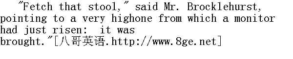 把那条凳子拿来,"布罗克赫斯特先生指着一条很高的凳子说一位班长刚从那儿站起来。凳子给端来了。