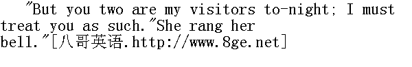 不过今晚你们俩是我的客人,我必须按客人相待,"她按了下铃。 "Barbara," she said to the servant who answered it, "I have not yethad tea; bring the tray and place cups for these two young ladies."" 巴巴拉,"她对应召而来的佣人说,"我还没有用茶呢,你把盘子端来,给两位小姐也放上杯子。" And a tray was soon brought. How pretty, to my eyes, did the chinacups and bright teapot look, placed on the little round table nearthe fire! How fragrant was the steam of the beverage, and the scentof the toast! of which, however, I, to my dismay (for I wasbeginning to be hungry) discerned only a very small portion: MissTemple discerned it too. 盘子很快就端来了,在我的目光中,这些放在火炉旁小园桌上的瓷杯和亮晃晃的茶壶多么漂亮!那饮料的热气和烤面包的味儿多香!但使我失望的是(因为我已开始觉得饿了),我发现那份儿很小,坦普尔小姐也同样注意到了, "Barbara," said she, "can you not bring a little more bread andbutter? There is not enough for three."" 巴巴拉,"她说,"不能再拿点面包和黄油来吗?这不够三个人吃呀。" Barbara went out: she returned soon - 巴巴拉走了出去,但很快又回来了。
