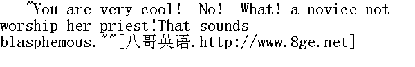你倒很冷静!不!一位见习修女不崇拜她的牧师?那听起来有些亵渎神灵。"