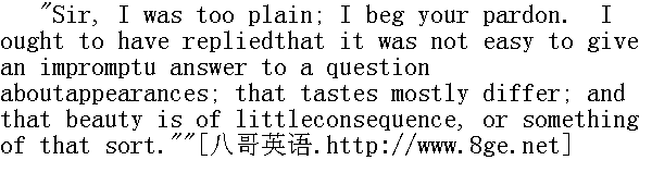 先生,怪我太直率了,请你原谅。我本应当说,像容貌这样的问题,不是轻易可以当场回答的;应当说人的审美趣味各有不同;应当说漂亮并不重要,或者诸如此类的话。"