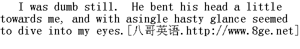 我依然一声不吭。他向我微微低下头来,匆匆地投过来一瞥,似乎要探究我的眼睛。