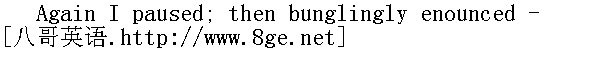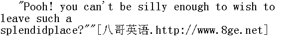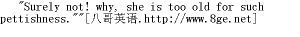 当然不是罗!她那么大了,不会为这点小事闹别扭的。" I thought so too; and my self-esteem being wounded by the falsecharge, I answered promptly, "I never cried for such a thing in mylife: I hate going out in the carriage. I cry because I ammiserable." 这恰恰也是我的想法。而她这么冤枉我伤了我的自尊,所以我当即回答,"我长得这么大从来没有为这种事哭过,而且我又讨厌乘马车出去。我是因为心里难受才哭的。" "Oh fie, Miss!" said Bessie." 嘿,去去,小姐!"贝茜说。 The good apothecary appeared a little puzzled. I was standingbefore him; he fixed his eyes on me very steadily: his eyes weresmall and grey; not very bright, but I dare say I should think themshrewd now: he had a hard-featured yet good-natured looking face.Having considered me at leisure, he said - 好心的药剂师似乎有些莫明其妙。我站在他面前,他目不转睛地看着我。他灰色的小眼睛并不明亮,但现在想来也许应当说是非常锐利的。他的面相既严厉而又温厚,他从从容容地打量了我一番后说: "What made you ill yesterday?"" 昨天你怎么得病的呢?"
