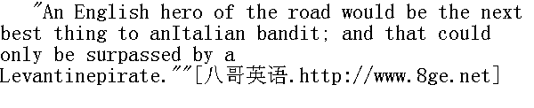 就我喜好而言,一个英国的路盗仅次于一个意大利的土匪,而意大利的土匪稍逊于地中海的海盗。"