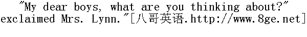 亲爱的孩子们,你们认为怎么样?"林恩太太嚷嚷道。