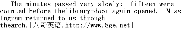 分分秒秒过得很慢,图书室的门再次打开时,才数到十五分钟。英格拉姆小姐走过拱门回到了我们这里。