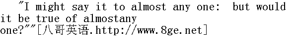 是几乎对谁都可以这么说,但几乎对谁都适用吗?" "In my circumstances."" 适合处于我这种情况的人。" "Yes; just so, in YOUR circumstances: but find me another preciselyplaced as you are."" 是的,一点也不错,适合你的情况。不过你倒给我找个处境跟你一模一样的人看看。" "It would be easy to find you thousands."" 我猜还得在上面放上银币吧?" I gave her a shilling: she put it into an old stocking-foot whichshe took out of her pocket, and having tied it round and returnedit, she told me to hold out my hand. I did. She ached her face tothe palm, and pored over it without touching it. 我给了她一个先令。她从口袋里掏出一只旧长袜,把钱币放进去,用袜子系好,放回原处。她让我伸出手去,我照办了。她把脸贴近我手掌,细细看了起来,但没有触碰它。
