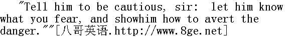 告诉他小心从事,先生,让他知道你的忧虑,指点他怎样来避开危险。"