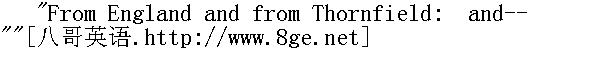 而同她们分手会感到难过。" "Yes."" 是的。" "Pity!" he said, and sighed and paused. "It is always the way ofevents in this life," he continued presently: "no sooner have yougot settled in a pleasant resting-place, than a voice calls out toyou to rise and move on, for the hour of repose is expired."" 可惜呀!"他说,叹了口气又打住了。"世上的事情总是这样,"他马上又继续说,"你刚在一个愉快的栖身之处安顿下来,一个声音便会叫你起来往前赶路,因为已过了休息的时辰。" "Must I move on, sir?" I asked. "Must I leave Thornfield?"" 我得往前赶路吗,先生?"我问。"我得离开桑菲尔德吗?" "I believe you must, Jane. I am sorry, Janet, but I believe indeedyou must."" 我想你得走了,简,很抱歉,珍妮特,但我的确认为你该走了。"
