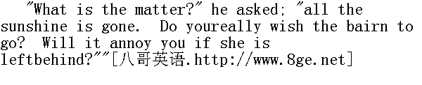 怎么啦?"他回答,"阳光全不见了,你真的希望这孩子去吗?要是把她拉下了,你会不高兴吗?"