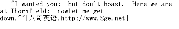 是呀,这你知道。刚才你还提起我不在的时候发生的事情--很可能无关紧要,但总而言之扰乱了你的心境。讲给我听听吧。也许是费尔法克斯太太说了什么?要不你听到佣人说闲话了?你那敏感的自尊心受到了伤害?"