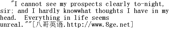 今晚我看不清自己的前景,先生。而且我几乎不知道脑子里想些什么?生活中的一切似乎都是虚幻的。"